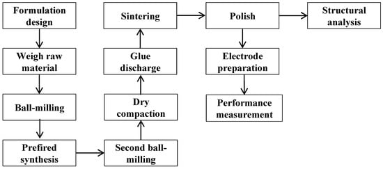 Process flow diagram of the NBT-100x piezoelectric ceramics.