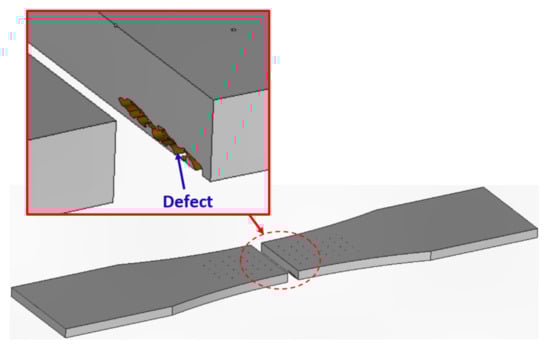 This approach has also been used to predict crack growth in durability tests on a range of both conventionally and AM-built coupons, and also in several full-scale fatigue tests [27,28,29,30,34,39,40,41,42,44,49,50,51,52,53,54,55]. Indeed, [56] used a similar formulation to study the growth of subsurface cracks in a tool steel. As such, the purpose of this paper is to highlight the generic nature of this approach to computing the durability of both conventionally manufactured and AM metallic structures. To this end, we investigate whether this methodology, i.e., using Equations (1) and (2) with the material constants as used in the prior study [28], namely A = 150 MPa m, D = 2.0 10−10, ∆Kthr = 0.1 MPa √m and p = 2, can be used to predict the durability of a WAAM 18Ni 250 maraging steel specimens, which, as noted in [57], are widely used in the aerospace industry, where failure occurs due to cracks that nucleate and subsequently grow from surface-breaking porosity.