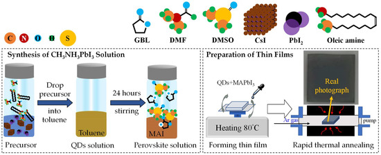 2.2. Synthesis of CsPbI3 QDs and CH3NH3PbI3 Solution