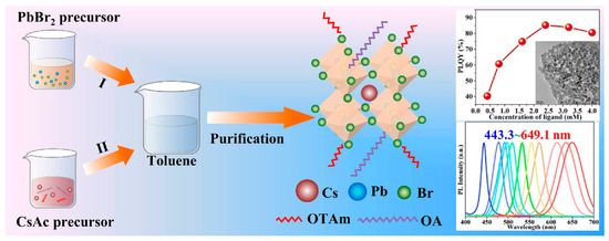 Synthesis of Colloidal CsPbBr3 PeNCs via LARP method (Graphical abstract) [42]. © Elsevier.