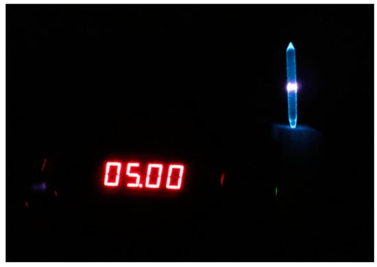 Photo of the 2.0Yb/Tm: YSZ single crystals under 980 nm laser excitation.
