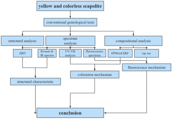In order to obtain the composition of colorless and yellow scapolite and the content of rare earth elements, XRF, EMPA, and ICP-MS were used, respectively.