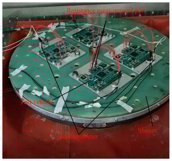 Airborne electronic equipment often suffers harsher conditions than standard commercial devices, including rapidly changing temperatures and severe vibration environments, which is a tremendous challenge to reliability design for microelectronic industries [1,2]. In general, 52% of the failures of airborne electronic devices are mainly caused by environmental effects, of which 42% are caused by temperature, 27% by vibration and 19% by humidity according to the U.S. air force statistics. It could be seen that temperature and vibration load have the most significant impact on the reliability of airborne components. However, with the development of advanced packaging technology, traditional two-dimensional (2D) packaging technologies have gradually converted to advanced three-dimensional (3D) packaging with far higher interconnect density, higher power, and smaller size [3,4]. These factors would further lead to reliability problems for the devices. The concerns are mostly related to the failure of the interconnected parts, especially for the solder joint [5,6,7]. The increased resistance, even a broken circuit caused by a harsh environment, could lead to severe reliability problems [8].