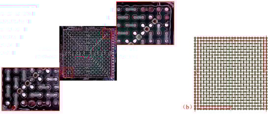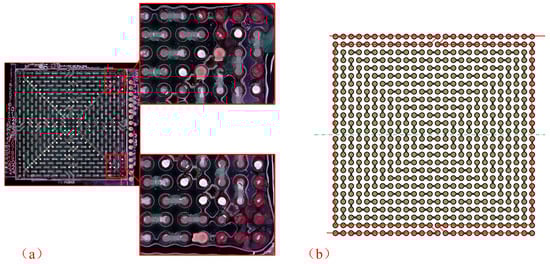 Similarly, the failed component was mainly the larger BGA device D101. As shown in Figure 14, the dye and pry test results and typical locations of the failed solder joints were summarized for D101. The simulation results were well supported by the concentration of the failed solder joints in the upper right corner. The location of the break on the component side was shown in Figure 15. The failed solder joints’ cracks appeared as depicted in Figure 13 because of the calculated maximum equivalent stress concentrated along the interface between the copper pad and the risky solder connection.