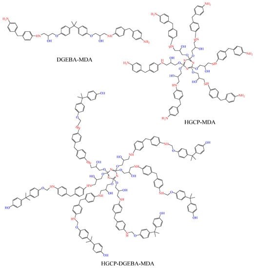 Epoxy resins (DGEBA, HGCP, and their mixture) crosslinked by MDA.