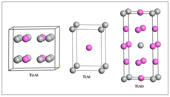Crystal structures of three kinds of Ti-Al intermetallics.
