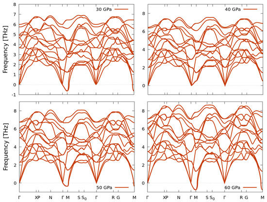 As illustrated in Figure 4, all three disordered structures at 30 GPa show imaginary modes along the dispersion curves, thus indicating that these structures are dynamically unstable at this pressure range.