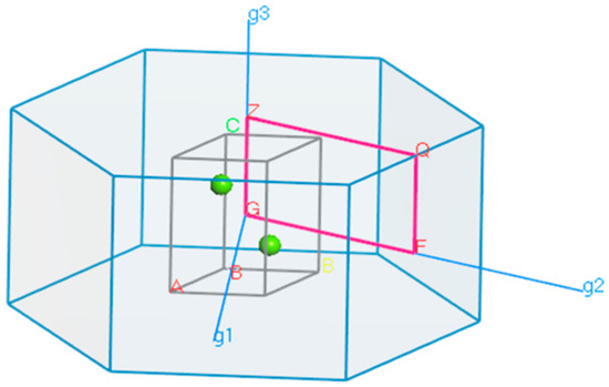 The Brillouin zone is an important concept in studying the electrical structure of solids. A key idea in solid-state physics is the Brillouin zone, which is crucial to comprehending the fundamental concepts of electronic energy bands on a theoretical level. The Wigner–Seitz primitive cell of the reciprocal lattice is referred to as the first Brillouin zone. These points comprise the collection of points in the reciprocal space that are closest to K = 0 compared to any other reciprocal lattice point. The second Brillouin zone is the collection of points that may be reached from the first zone by merely straddling one Bragg plane. The nth Brillouin zone is the collection of locations that may be reached from the origin by crossing at least n − 1 Bragg planes, according to a generalisation of this definition. Figure 2 shows the Brillouin zone of a basic Mg structure that is considered in calculating the band structure. The G, F, Q, and Z points are considered to comprise the simplest path, which was chosen for band structure analysis.