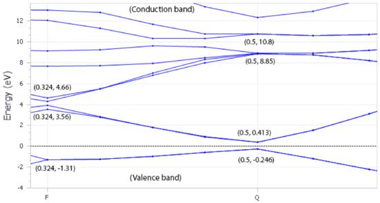 Band structure at range F (0.324) and Q (0.5) k-point.