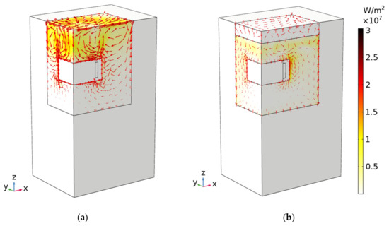 where is the absolute temperature, is the velocity, is the volumetric density, is the thermal conductivity, is the specific heat capacity at constant pressure, and is the heating source volumetric power density. The latter can express, for example, the volumetric power density of Joule losses in superconductor domains. The thermal power flux is given according to Fourier’s law (2).