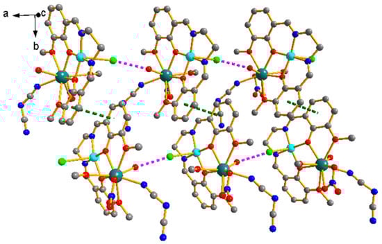 Molecule-based magnets [1,2,3,4,5], which are widely applied in molecular spintronics [6,7,8], quantum computations [9,10,11], and as magneto luminescent materials [12], have gained much attention in the field of functional molecular materials. Among these, heterometallic 3d-4f polynuclear complexes make up one of the most interesting research topics [13,14,15,16]. In these type of complexes, the 4f ions provide large ground state magnetic moments and magnetic anisotropy, whereas the 3d ions take part in magnetic coupling interactions. Single-ion anisotropy [17,18,19,20,21,22] and magnetic coupling interactions [23,24,25,26] are crucial to the scale of the magnetization relaxation barrier. When there is a stronger 3d-4f magnetic exchange interaction, the quantum tunneling of magnetization (QTM) is effectively restrained, and large energy barriers, hysteresis loops and relaxation times can be observed [23,24]. Therefore, the 3d-4f metal combinations are more suitable for constructing low-dimensional molecular magnets (single molecule magnets, SMMs or single chain magnets, SCMs) [25,26,27,28,29,30].
