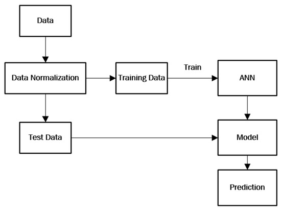 After obtaining the experimental data, the data were divided into training set and test set, and then the training set was input into the neural network to train the model. Finally, the accuracy of the trained network was tested using the test set. The training flow chart is shown in Figure 3.