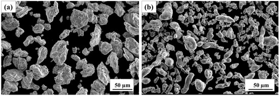 The present work uses commercially pure, gas-atomized, Al powder and Mg powders with 99.5% and 99.8% purity from Alfa Aesar (Haverhill, MA, USA). Both the as-received metal powders have particle sizes less than 45 µm. In the current work, the powders with no dopants added are referred to as ‘pure’. Figure 1 shows the secondary electron SEM micrograph of the as-received pure Mg and Al powders. The SEM micrographs show that the pure Mg powder particles are irregularly shaped with rough surface textures. On the contrary, pure Al powder has particles of different sizes with irregular cylindrical shape morphology and a much smoother surface texture. The powders were stored inside a nitrogen environment glove box to prevent oxidation.