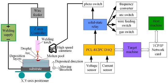 - Zhu, L.; Luo, Y.; Han, J. Energy characteristics of droplet transfer in wire-arc additive manufacturing based on the analysis of arc signals. Measurement 2019, 134, 804–813. [Google Scholar] [CrossRef]