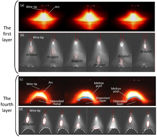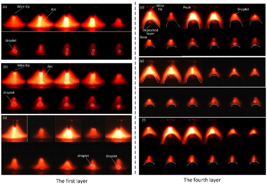 3.2. Arc Characteristics and Droplet Transfer Behavior in the GMA–AM Process