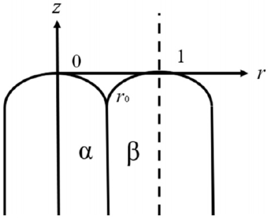 Figure 1 shows the dimensionless cylindrical coordinate system selected by our group before, where the origin of the cylindrical coordinate system coincides with the vertex of the α phase, and r0 represents the position where the α phase, β phase and liquid phase are combined, and the selected unit period is 1.