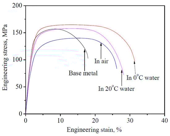 The use of artificial cooling (e.g., water) during the course of the FSW process can minimize heat input and the associated softening effect [2]. Underwater friction stir welding (UFSW) improves the mechanical properties of joints by preventing grain coarsening in different weld zones, especially in the HAZ. Using water cooling may require revising the welding parameters of the conventional FSW processes (e.g., rotational speed) to obtain high-quality defect-free joints [58,59]. Water cooling media can greatly improve the fatigue performance of FSWed joints by controlling residual stresses and distortions [25,60].