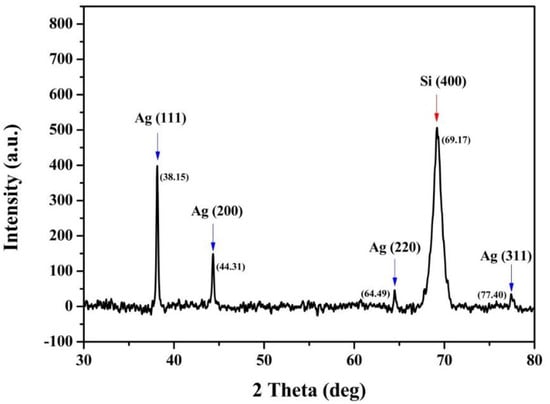 X−ray diffractogram of Ag-NPs on a silicon substrate.