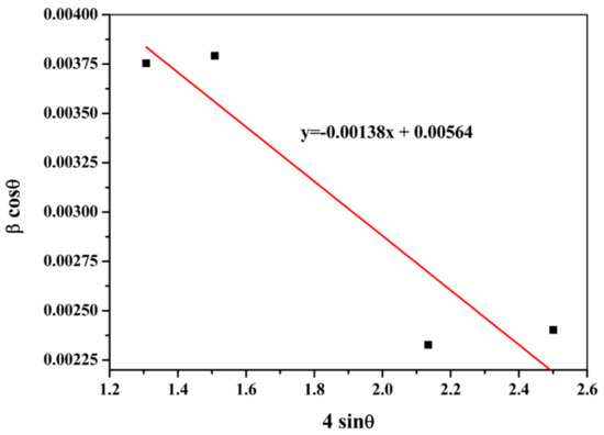 Williamson Hall Plot of β cos θ vs. 4 sin θ of Ag-NPs sample.
