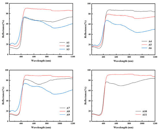 UV–Vis diffuse reflectance spectra of samples A1–A11.