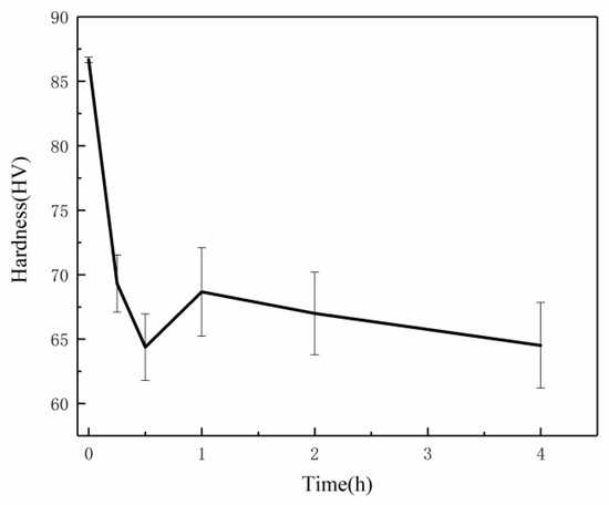 | Annealing Time (h) | Yield Strength (MPa) | Tensile Strength (MPa) | Elongation (%) | Length (μM) | Width (μM) | Hardness (HV) |