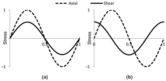 Essentially, there are two types of loading by which all cyclic loading can be characterized: proportional and non-proportional. The main feature that distinguishes the two types of loading is the variation in the principal directions of the stress tensor. In non-proportional loads, the main directions of the stress tensor change during the duration of the load, while in proportional loads they remain constant or unchanged. As for the effect of the load on the material, these two types of loads cause different fatigue damage. In proportional loads, the material is loaded in a certain plane (direction) given by the ratio of the stress amplitudes. Non-proportional loads, on the other hand, activate more than one stress plane in the material, resulting in non-proportional loads causing additional phenomenological effects, such as non-proportional hardening [23].