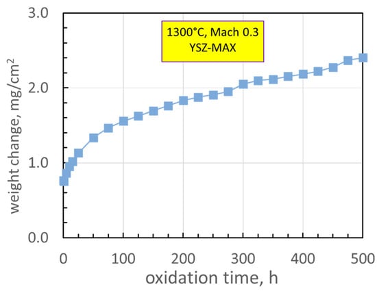 Weight change performance of YSZ-coated Ti2AlC MAX phase in 1300 °C Mach 0.3 burner test. (from Smialek et al., 2020 [5]).