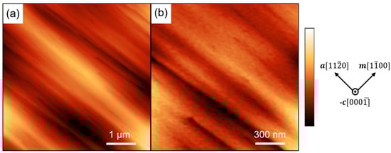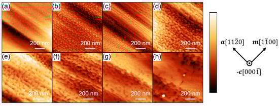 - Keller, S.; Fichtenbaum, N.A.; Wu, F.; Brown, D.B.; Rosales, A.M.; DenBaars, S.P.; Speck, J.S.; Mishra, U.K. Influence of the substrate misorientation on the properties of N-polar GaN films grown by metal organic chemical vapor deposition. J. Appl. Phys. 2007, 102, 083546. [Google Scholar] [CrossRef]