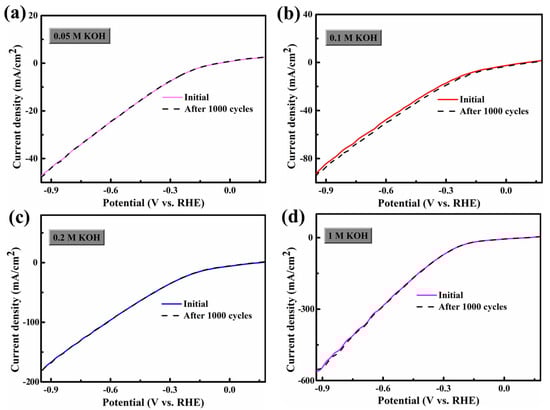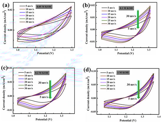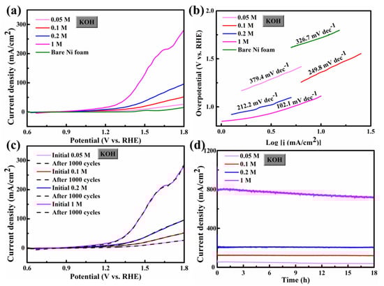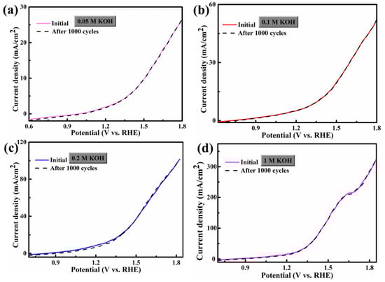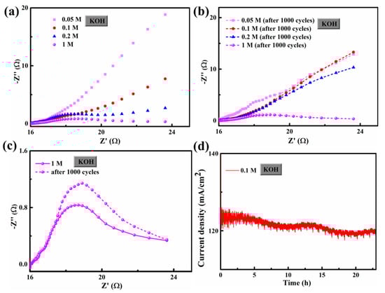 | Electrolyte (M/KOH) | pH | E (RHE) |