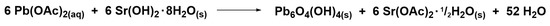 Possible reaction equation for the formation of Pb6O4(OH)4 from lead(II) acetate, Pb(OAc)2, and strontium hydroxide octahydrate, Sr(OH)2 · 8H2O.