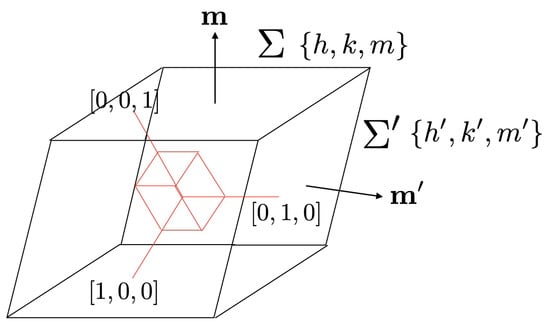 The crystal is observed orthogonally to the plane and on this plane we measured , and rad. Another face of the specimen is parallel to the plane and accordingly, the face is rotated at an angle of around the direction