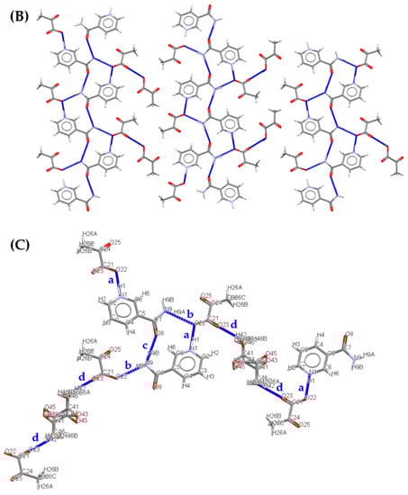 - Etter, M.C. Encoding and Decoding Hydrogen-Bond Patterns of Organic Compounds. Acc. Chem. Res. 1990, 23, 120–126. [Google Scholar] [CrossRef]