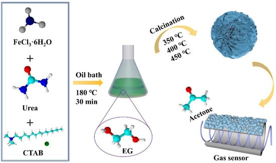 - Wang, P.; Zhang, X.; Gao, S.; Cheng, X.; Sui, L.; Xu, Y.; Zhao, X.; Zhao, H.; Huo, L. Superior acetone sensor based on single-crystalline α-Fe2O3 mesoporous nanospheres via [C12mim][BF4]-assistant synthesis. Sens. Actuators B Chem. 2017, 241, 967–977. [Google Scholar] [CrossRef]