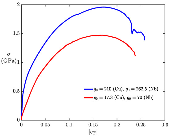 Table 4 shows the evolution equation for material strength (g). Here, denotes the saturation strength, h is the total hardening rate, is the Stage II hardening rate, (non-dimensional) characterizes the hardening rate due to geometrically necessary dislocations (GNDs) [22].