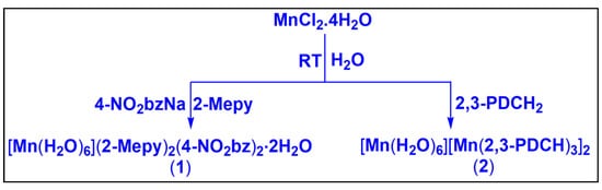 2.2.1. Synthesis of [Mn(H2O)6](2-Mepy)2(4-NO2bz)2·2H2O (1)