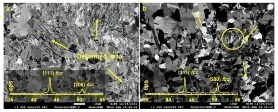 3.3. Microstructure of the Annealed Samples after Plastic Deformation