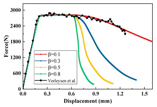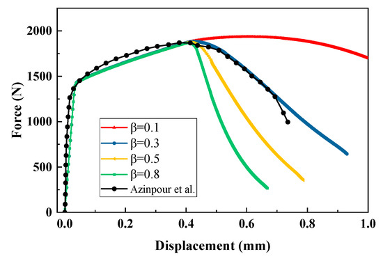 Force-displacement curves of stainless-steel plate specimen for different values of β [45].