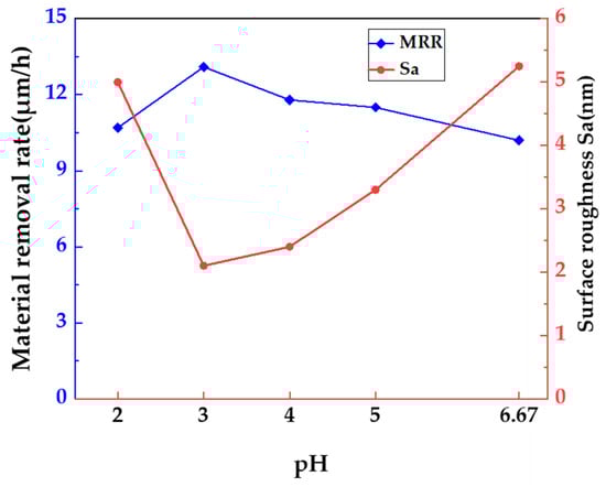 The MRR and surface roughness of polished 4H-SiC substrate of Si face at different pH.