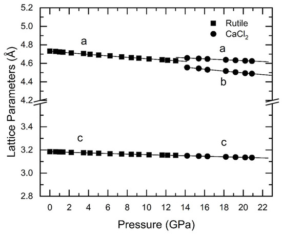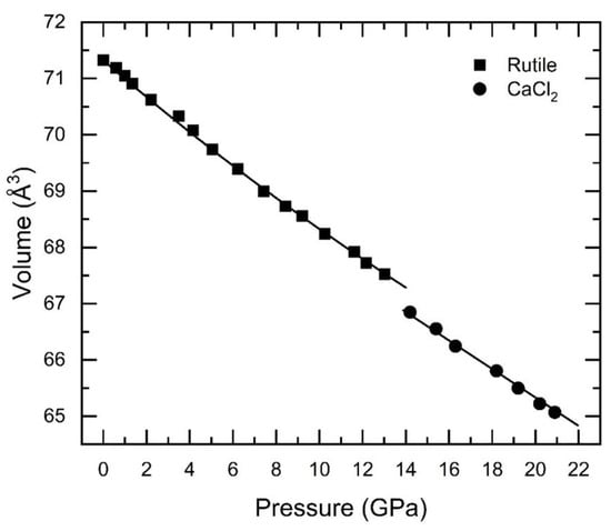 - Hazen, R.; Finger, L. Bulk moduli and high-pressure crystal structures of rutile-type compounds. J. Phys. Chem. Solids 1981, 42, 143–151. [Google Scholar] [CrossRef]