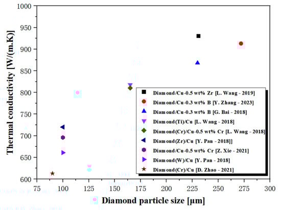Thermal conductivities of copper-based diamond composites with different sizes of diamond particles. Copyright 2019, with permission from Elsevier [28].