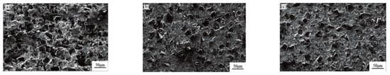 Microstructures of copper-based diamond composites with different diamond volume fractions sintered at 750 °C: (a) 70%; (b) 60%; (c) 50%. Copyright 2014, with permission from Elsevier [37].