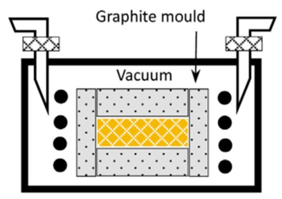 Schematic diagram of vacuum hot pressing sintering. Copyright 2018, with permission from Elsevier [34].