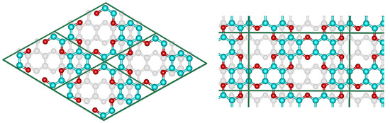 Although the proposed graphocrown material belongs to the hexagonal lattice system (the primitive cell shown on the left in Figure 1), for clarity, in this paper we focused on the simulation of the orthorhombic supercell with 2 layers and 72 atoms (Figure 1 on the right).