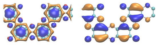 For calculations of charge carrier mobilities, the local molecular properties (Local Ionization Energy (IEL) [61] and Local Electron Affinity (EAL) [62,63]) were calculated from the molecular orbital densities and their respective energies. These calculations were performed with the EMPIRE program [48,49] and eh5cube code [64] via the semi empirical Hartree–Fock molecular orbital theory, using an AM1 [65] and PM6 [66] Hamiltonians. These local properties allow for the description of the interaction of a charge carrier of complicated quantum mechanical systems into simple scalar potentials embedded in 3-dimensional space. The effective potential for a hole is then given by the local ionization energy Vhole(x) = IEL(x) and the effective potential for an electron is given by minus the local electron affinity Velectron(x) = −EAL(x). It is possible to perform the propagation of an excess charge carrier using these energy landscapes, which then can reveal information about the conduction characteristics of quantum systems [67,68]. The interpretation of the effective potentials alone can already help to estimate some conductivity characteristics.