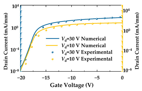 - Caughey, D.M.; Thomas, R. Carrier mobilities in silicon empirically related to doping and field. Proc. IEEE 1967, 55, 2192–2193. [Google Scholar] [CrossRef]