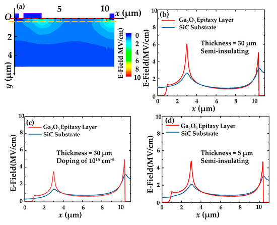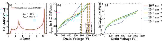 - Sugiura, T.; Nakano, N. Impact Ionization and Critical Electric Field in ⟨010⟩-Oriented β-Ga2O3 Schottky Barrier Diode. IEEE Trans. Electron Devices 2022, 69, 3068–3072. [Google Scholar] [CrossRef]