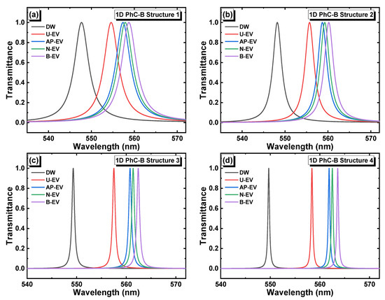 - Parimala Devi, M.; Awasthi, S.K.; Alipour-Banaei, H.; Nambi, R. Refractive index EV sensor based on conventional and mirror image 1D defective photonic crystal designs: Theoretical study. J. Comput. Electron. 2022, 21, 1404–1415. [Google Scholar] [CrossRef]