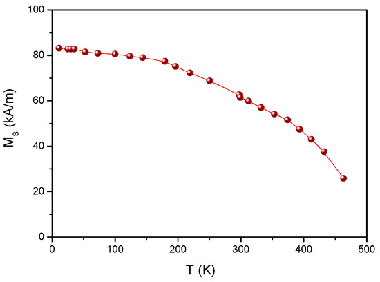 The temperature dependence of Ku was also determined. In rare-earth-containing materials, the exponential increase of Ku with decreasing temperature is explained by a single ion model [85]. The exchange parameter also depends on the temperature; it decreases with increasing temperature up to the Curie temperature. The domain wall energy density also decreases monotonically and exponentially with decreasing temperature. The domain wall thickness increases close to linearly with increasing temperature up to 400 K and then decreases rapidly at temperatures close to the Néel temperature.