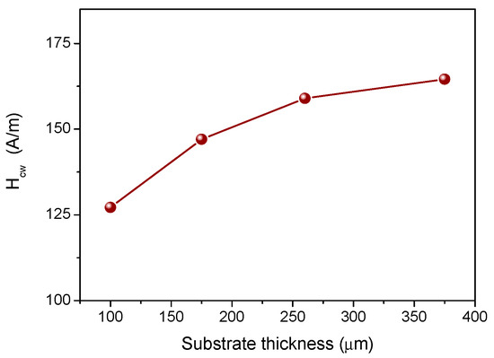 Domain wall coercive field, Hcw vs. substrate thickness [80].