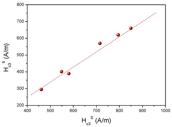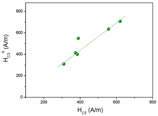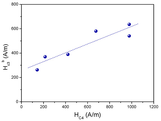 9.1. Influence of Samples’ Magnetic Parameters on Coercivity